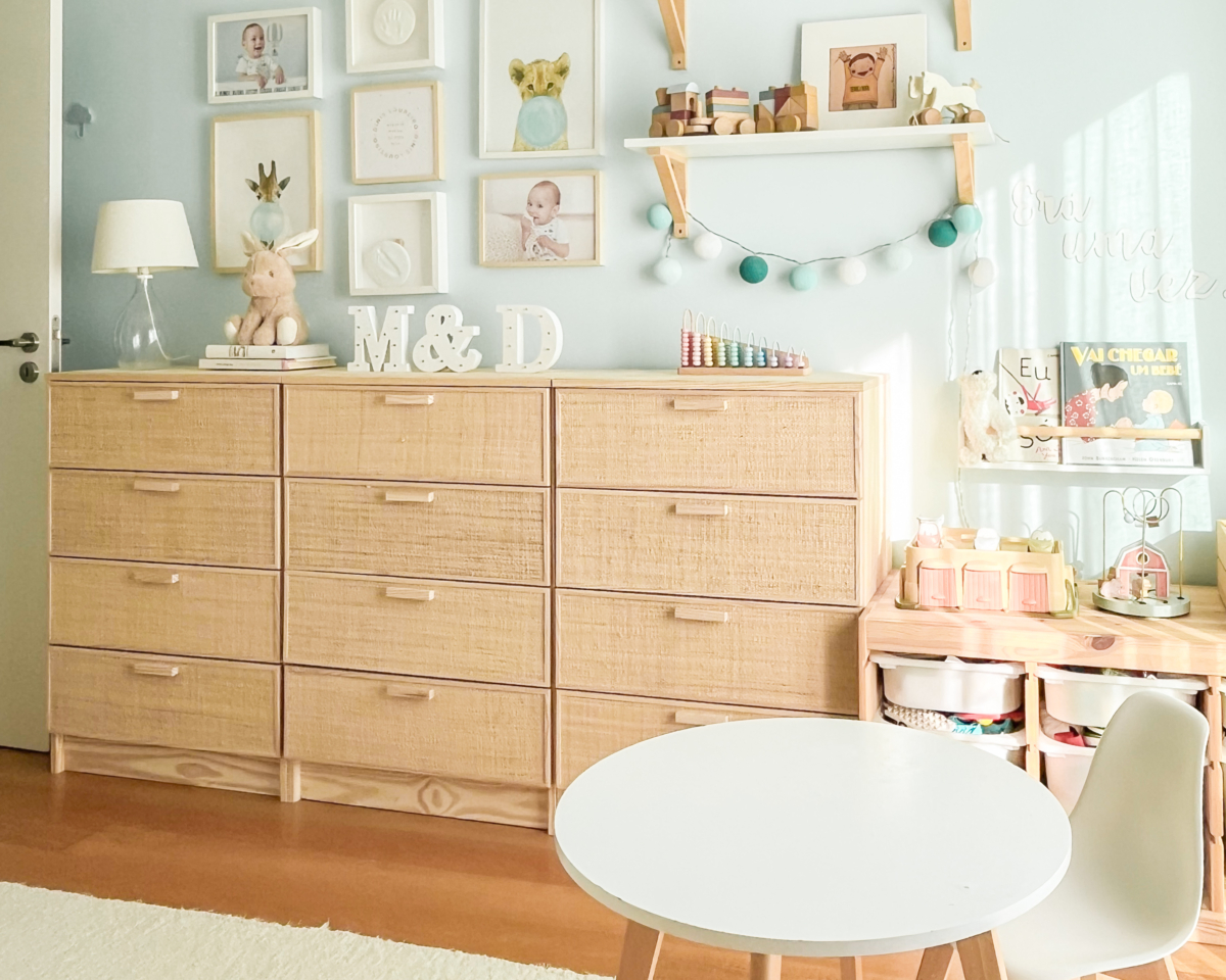 Si prefieres un espacio más despejado, nuestras cómodas de rafia AURA son una gran opción. Además de ropa, permiten guardar muchos juguetes sin que queden a la vista y ayudan a mantener una sensación de orden incluso en salones u otros espacios compartidos.