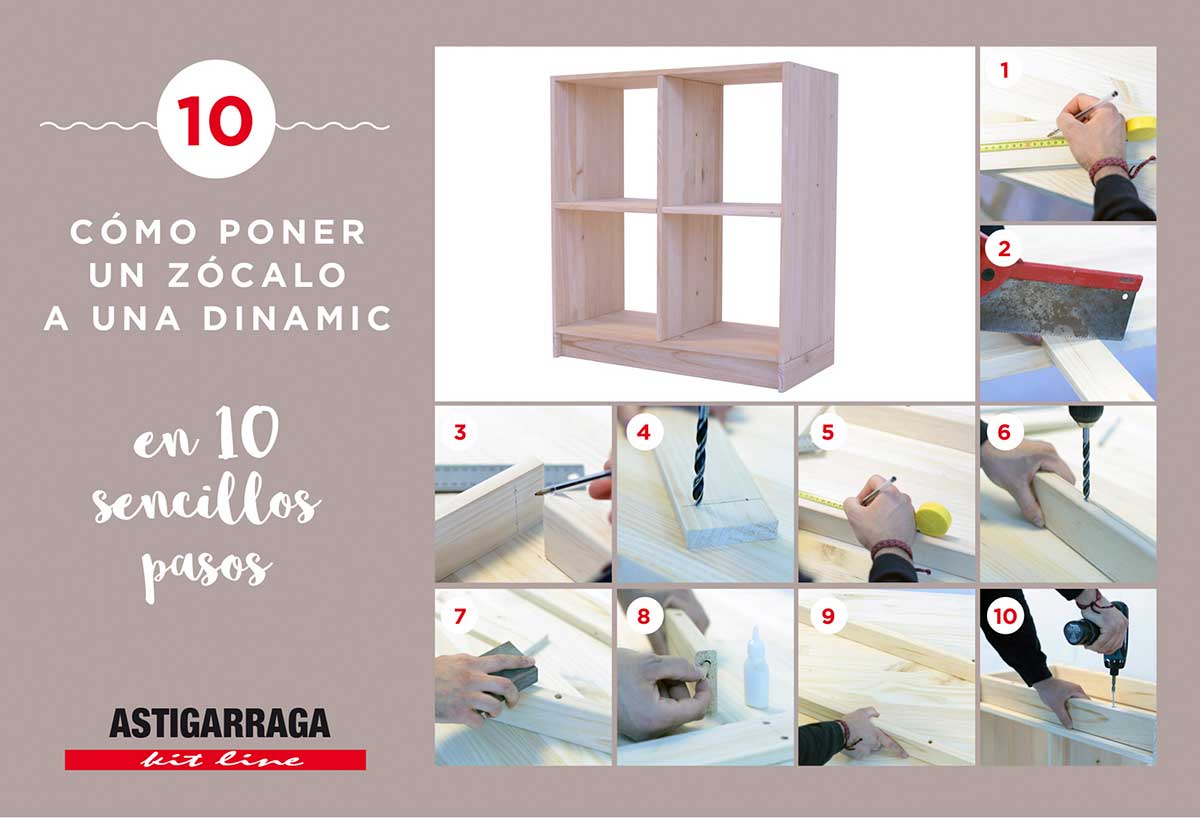 Dans le post d’aujourd’hui nous allons vous expliquer, étape par étape, comment créer et ajouter une plinthe à une étagère de notre série DINAMIC. Dans ce cas, nous avons utilisé une Dinamic de 2×2 cubes, mais ce qui est certain, c’est que le tutoriel va vous servir pour tout type de meubles sans plinthe.