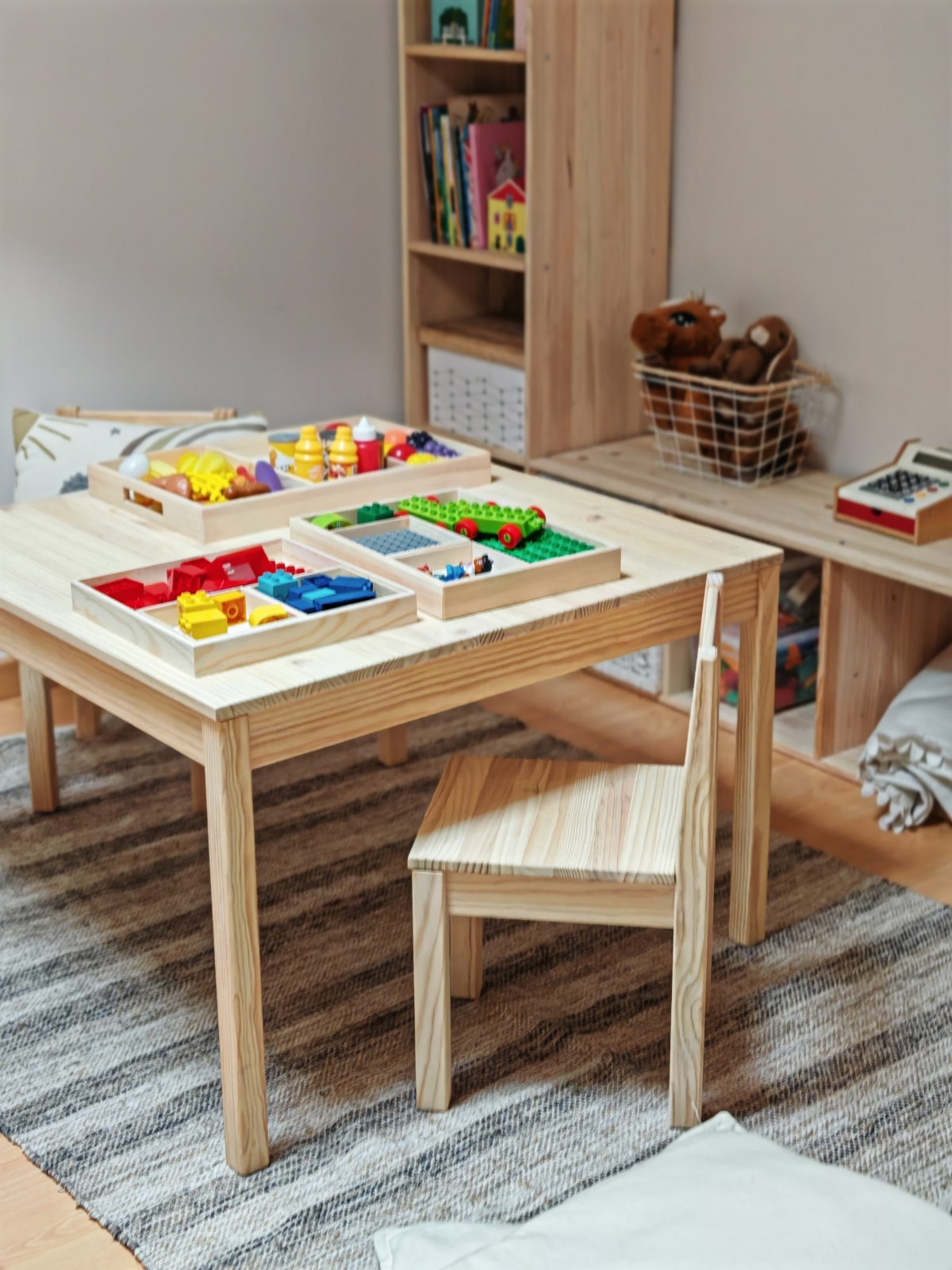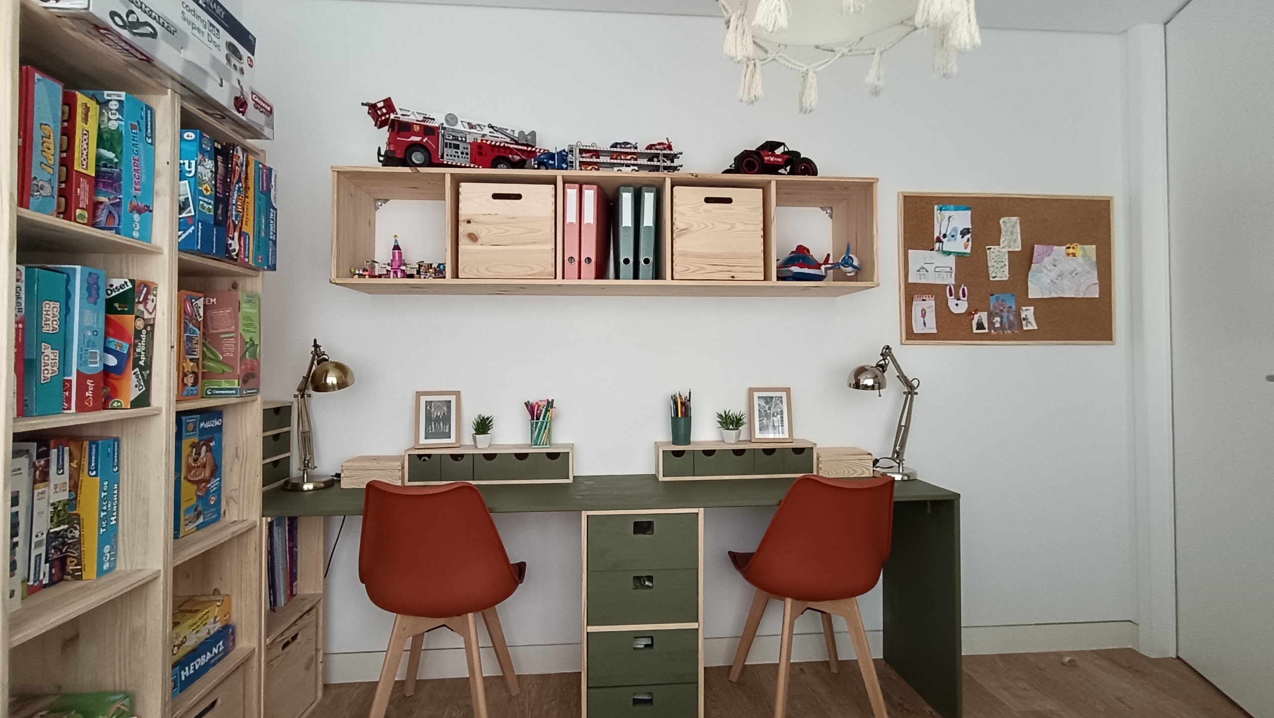 Con nuestros muebles de madera natural certificada, sostenibles y personalizables, cada familia puede construir un espacio bonito, funcional y lleno de calma donde los niños disfruten aprendiendo cada día.