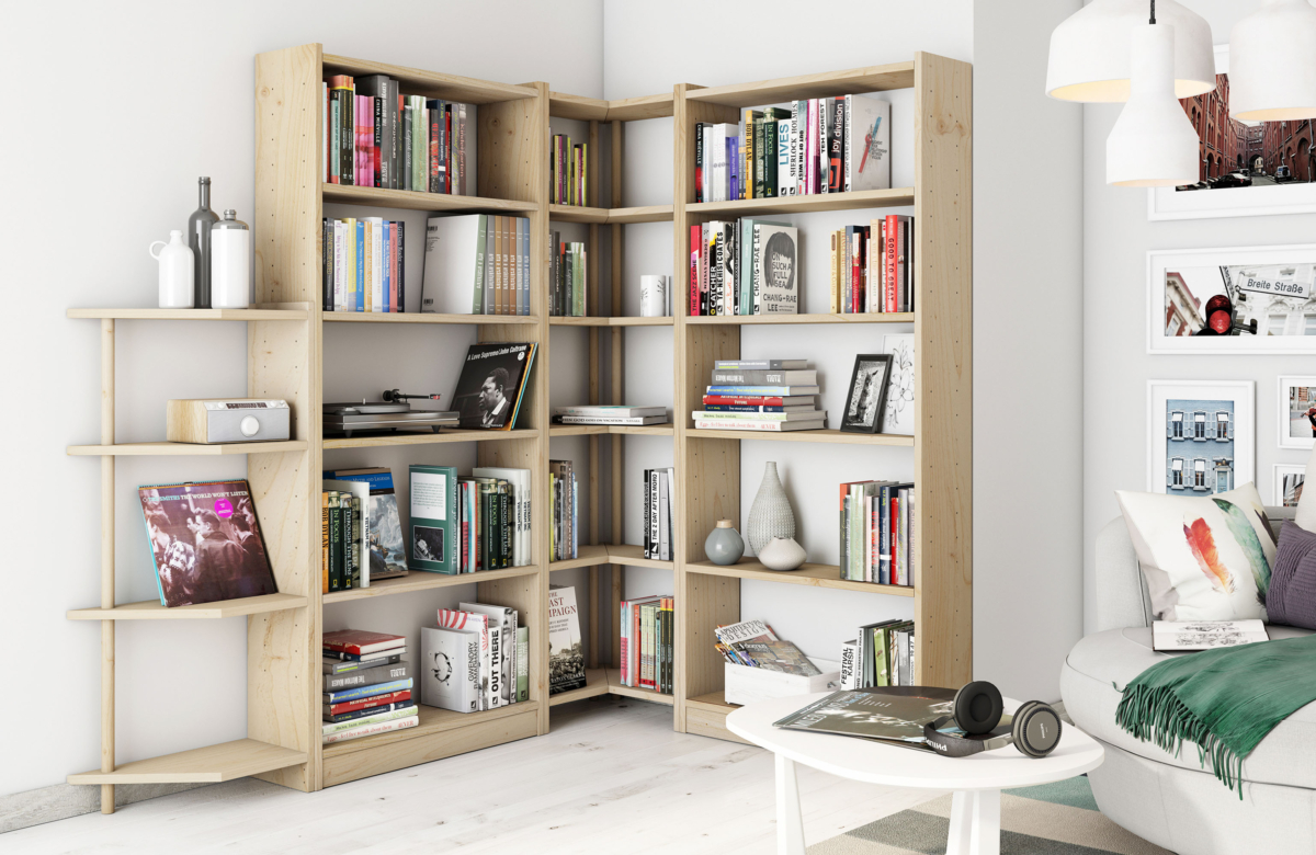 Hay mucho más. ¿Sabéis que esta colección tiene la mejor de las soluciones para las esquinas? No te preocupes si no dispones de mucho espacio porque podrás aprovechar hasta los rincones más complicados gracias a los módulos esquineros de las estanterías librerías Gala, que te permitirán aprovechar al máximo cada centímetro disponible: la estantería esquinera de 4 baldas y la estantería esquinera de 6 baldas. ¿La peculiaridad? Con una sola estantería puedes crear hasta cuatro posiciones diferentes.