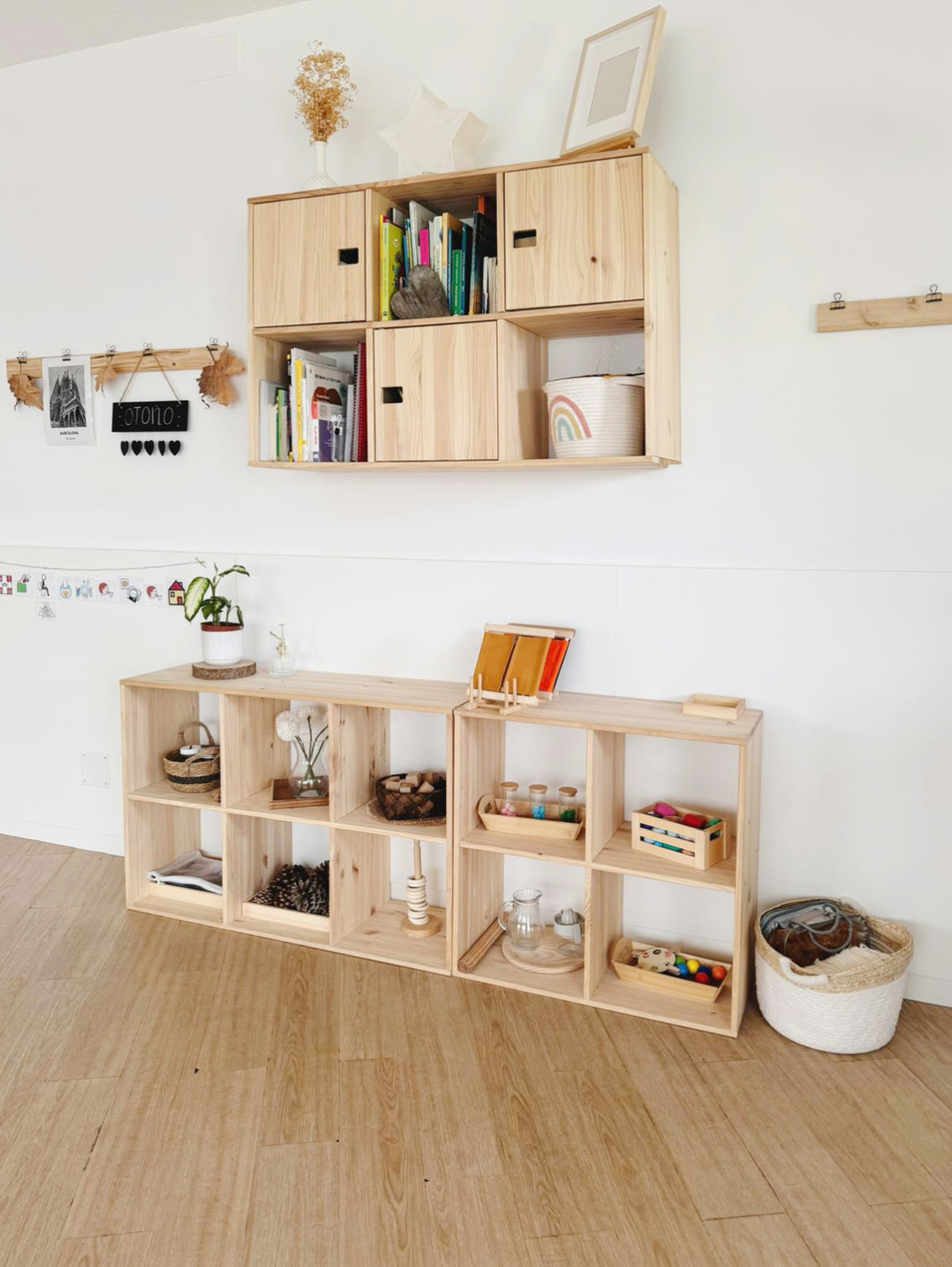-Son una pieza fundamental en nuestro “ambiente preparado”. Nos han ayudado a organizar el espacio de forma que todo esté al alcance de los peques, visible y ordenado, lo que fomenta muchísimo su autonomía. Además, su diseño modular y abierto permite adaptar los materiales a las diferentes actividades y necesidades del día a día, haciendo que el espacio sea flexible y dinámico. Con estas estanterías conseguimos un entorno limpio, accesible y acogedor, donde cada niño puede elegir qué quiere explorar, aprender y descubrir. Son una herramienta esencial para que nuestro proyecto pedagógico se haga realidad.