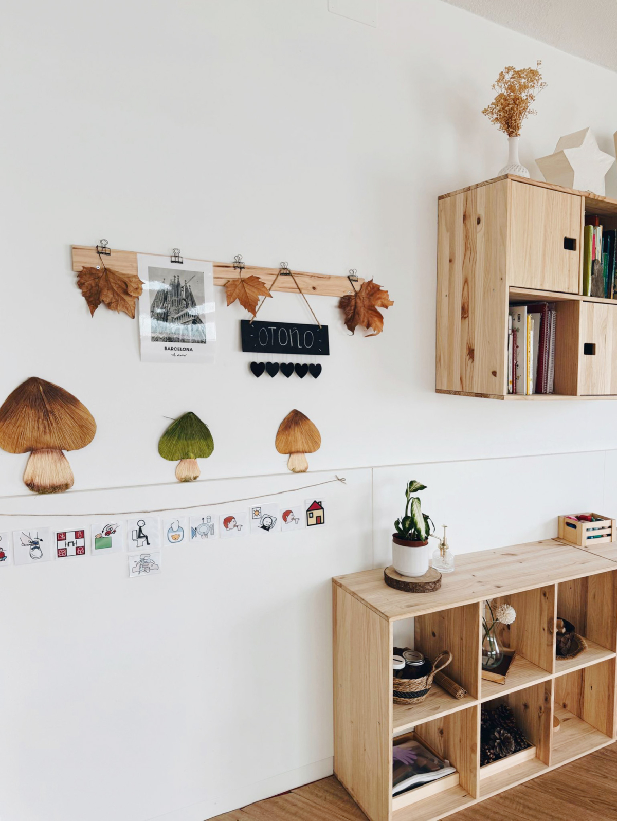Para organizar estos espacios, nos apoyamos mucho en el mobiliario infantil de Astigarraga Kit Line. Sus estanterías abiertas y modulares nos encantan porque permiten que los niños vean y elijan los materiales por sí mismos, sin necesitar ayuda. Además, tienen una estética muy natural que encaja genial con nuestro ambiente cálido y acogedor. Gracias a estos muebles hemos podido diseñar un entorno bonito, funcional y totalmente a su escala. Todo lo que necesitamos para que el aprendizaje suceda de forma espontánea y libre.