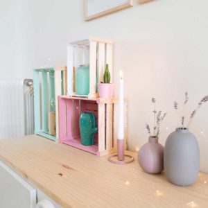 Son cajas de madera tan sencillas que las puedes colocar en cualquier espacio. Es más: las puedes pintar como ha hecho Tamara en su salón con los colores pasteles de moda o dejarlas al natural, como ha preferido Sara, de El Mundo de Mr Gugú.