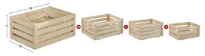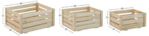 Como te decimos, puedes utilizar las cajas comunes de frutas, otras más sofisticadas para almacenar vino o si no, te lo ponemos mucho más facil: el lote de 3 cajas montadas de madera maciza de pino y acabado sin barnizar de Astigarraga Kit Line. Puedes adquirir el lote completo o por unidad. La medidas son de:
