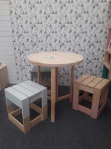 El taburete alto tiene unas medidas de 75x37x37cm (alto/ancho/fondo) y con una sección de madera de 85x18mm. Por su lado, las medidas del taburete bajo son de 45,5x37x37 cm (alto/ancho/fondo) y con una sección de madera de 85x18mm. Como todos los productos de Astigarraga Kit line, estos taburetes están fabricados con madera ecológica de pino, procedente de nuestros propios bosques gestionados sosteniblemente. Como os decimos, las utilidades son muchas. Y dejar los taburetes en su madera natural sin barnizar o personalizarlos con pintura, será decisión vuestra.