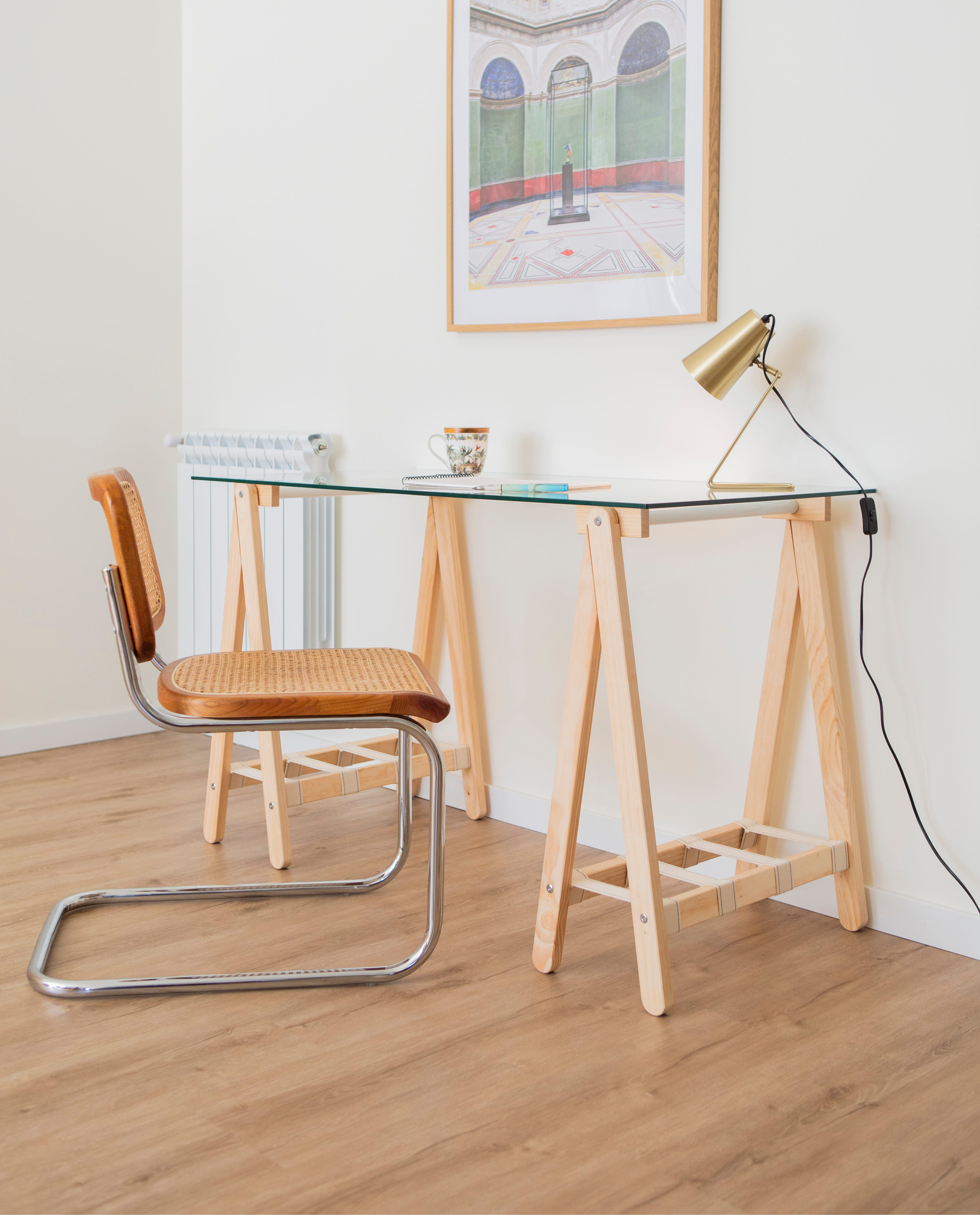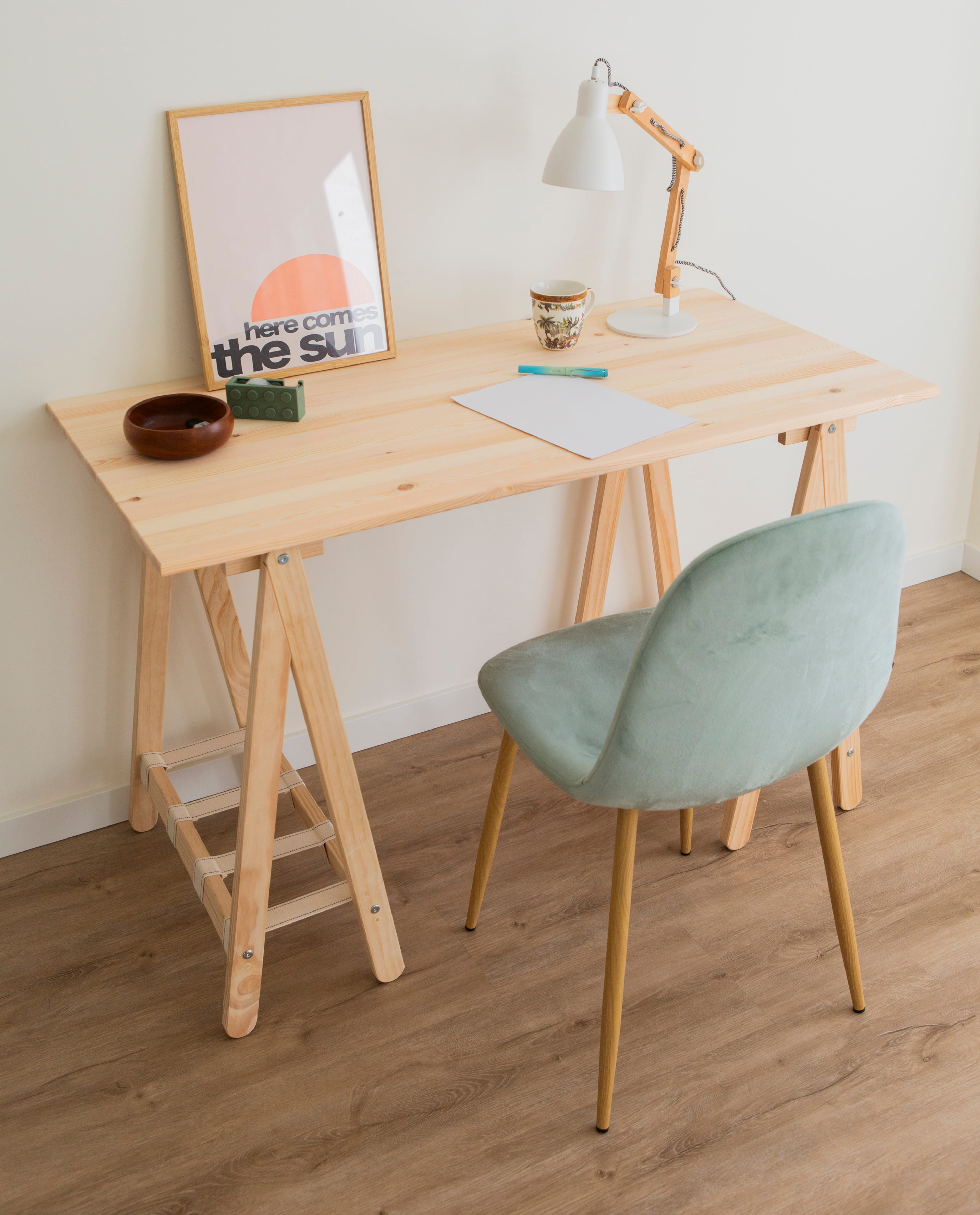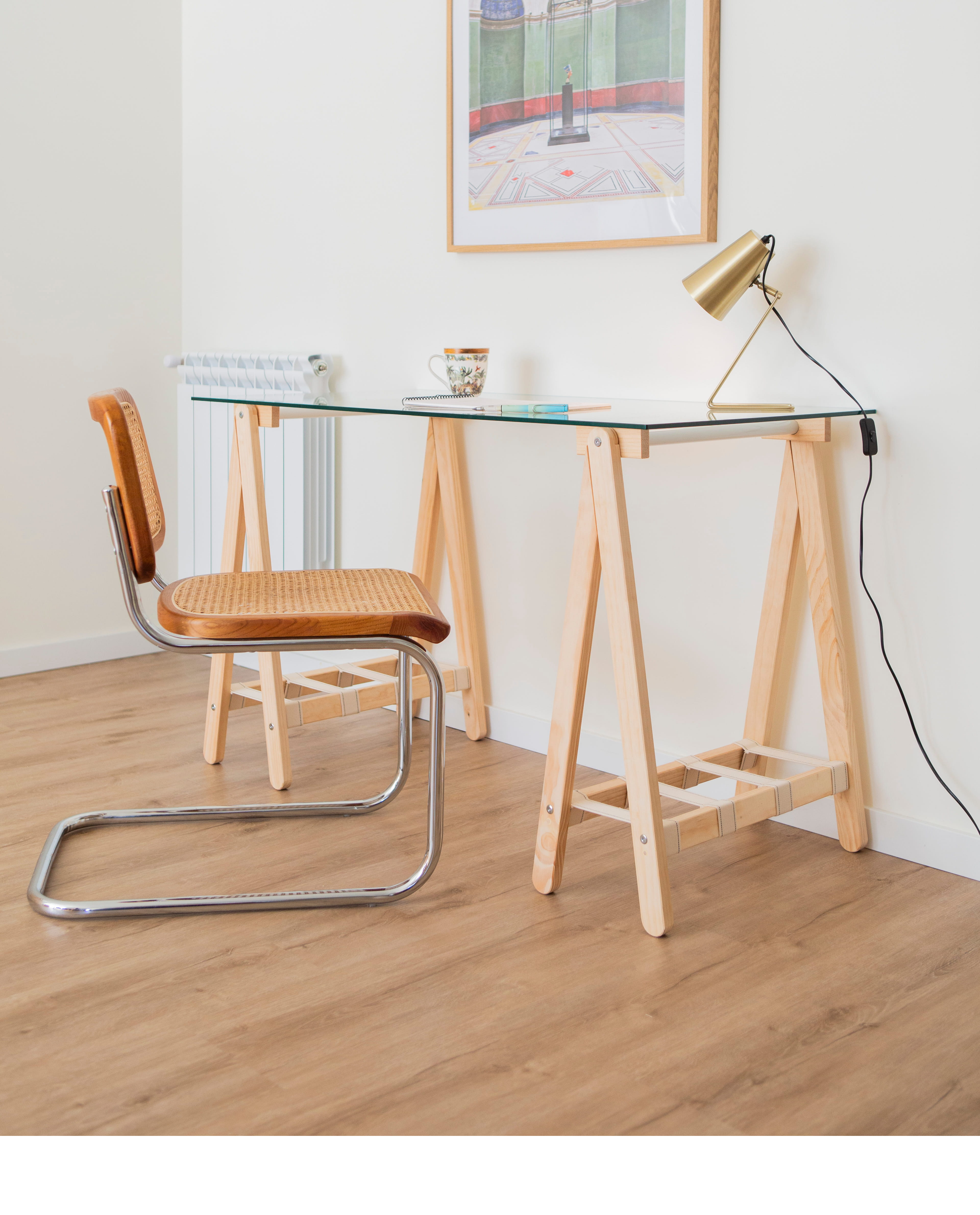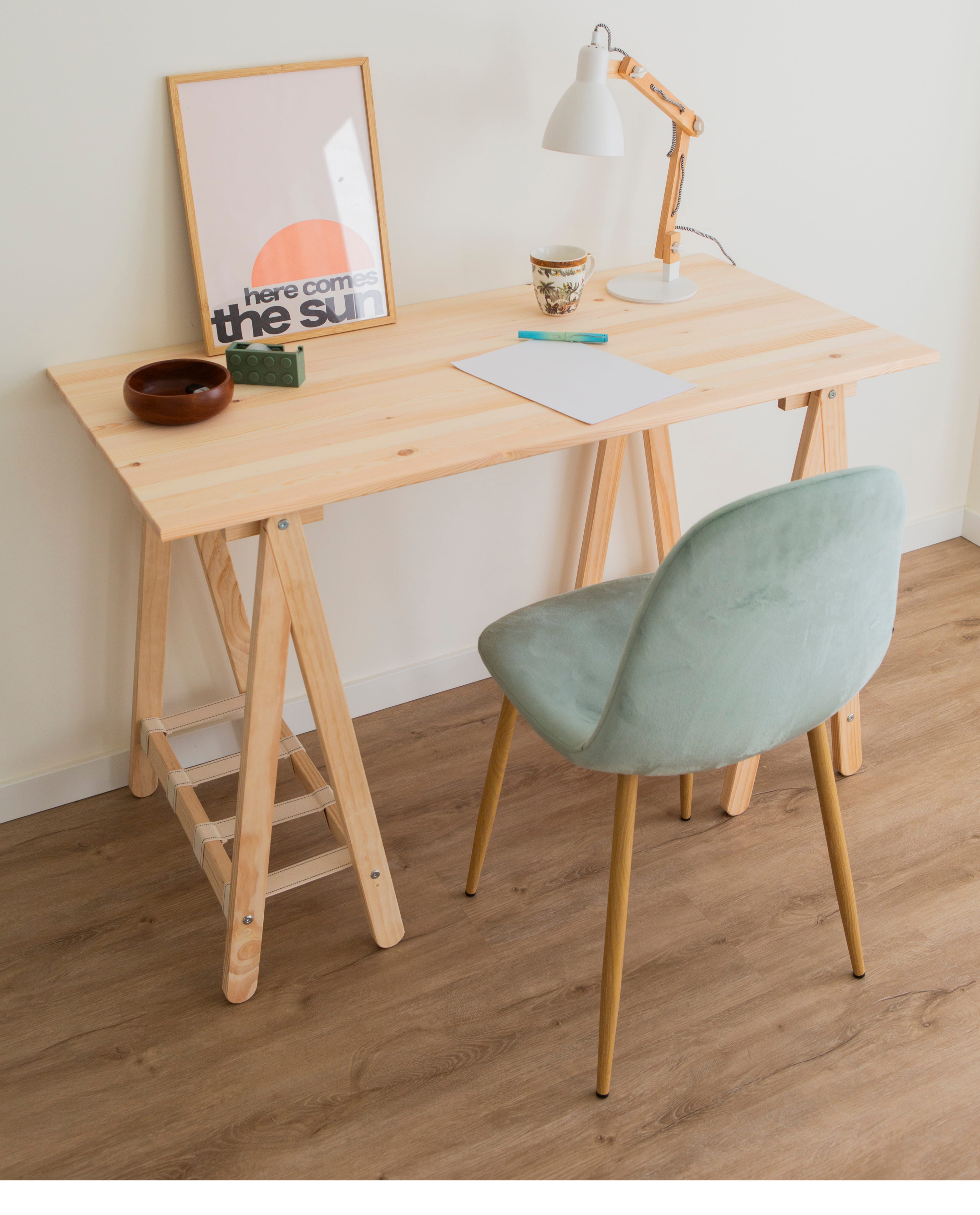 Fabricado con una cuidada combinación de madera que respira naturaleza, metal resistente que aporta equilibrio y algodón trenzado que evoca lo hecho a mano, su presencia transforma cualquier ambiente en un lugar donde la creatividad puede echar raíces.