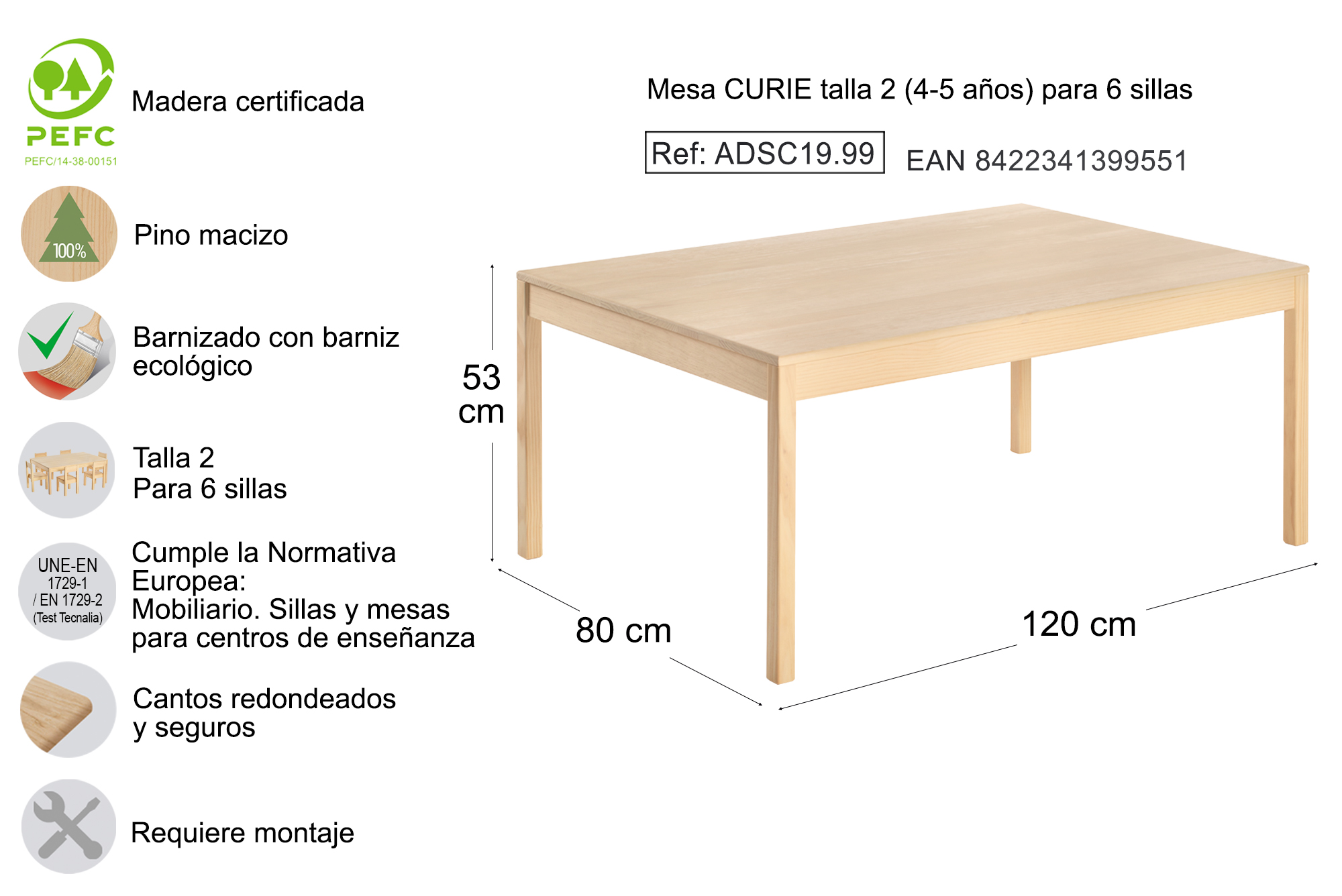 Descubre nuestra mesa infantil de madera talla 2, diseñada especialmente para 6 niños de entre 4 y 5 años, perfecta para crear un entorno en el que los más pequeños puedan explorar su creatividad, aprender juntos y disfrutar de momentos de juego compartido. Esta mesa escolar de madera proporciona un espacio cómodo y funcional, ideal para que los peques se involucren en actividades en grupo, fomentando la colaboración y el aprendizaje en equipo de manera natural y divertida.