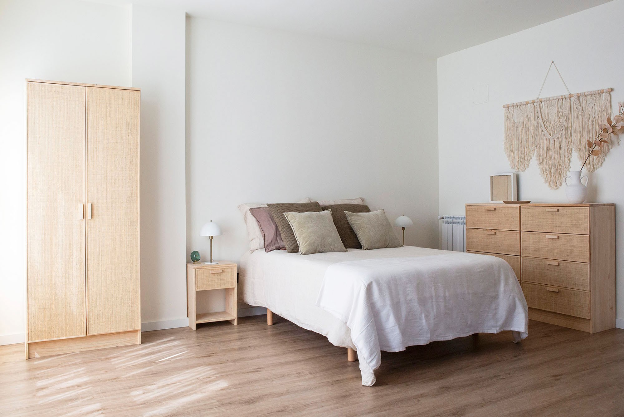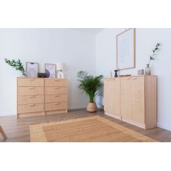 La cómoda de rafia combina a la perfección con el aparador AURA y también puede integrarse con el resto de piezas de la colección (armario, mesita de noche o zapatero). Juntos crearán una atmósfera acogedora en tu dormitorio, que multiplica la capacidad de almacenamiento y lo llena de serenidad y naturalidad.