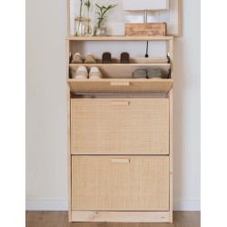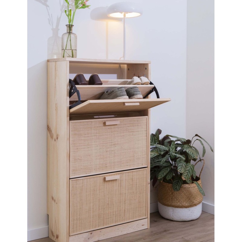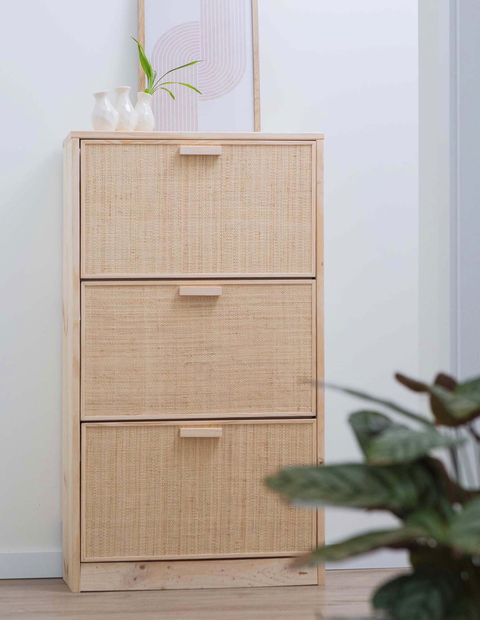 • Zapatero AURA con tres puertas de rafia natural fabricadas a mano