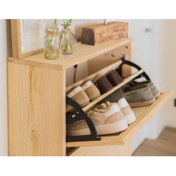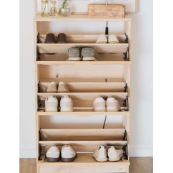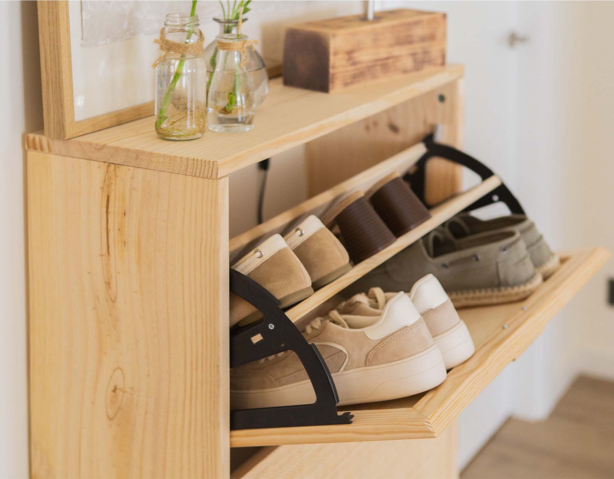 Su estética atemporal hace que este zapatero estrecho, fabricado con madera de pino de origen sostenible y certificado PEFC, sea ideal para ambientes de estilo escandinavo, minimalista o contemporáneo, donde se valora la funcionalidad, el orden visual y los materiales nobles. Una pieza elegante y práctica con un fondo de 25 cm para espacios reducidos.