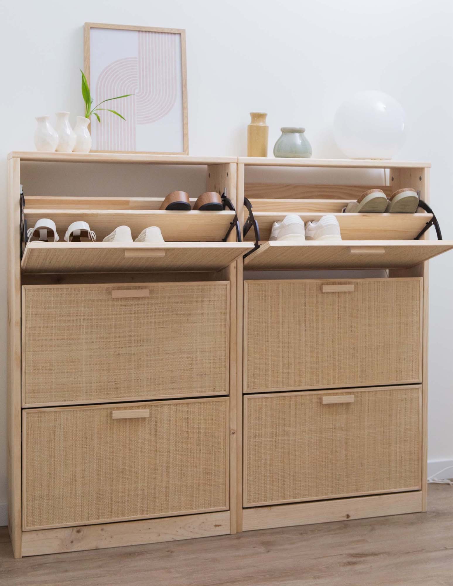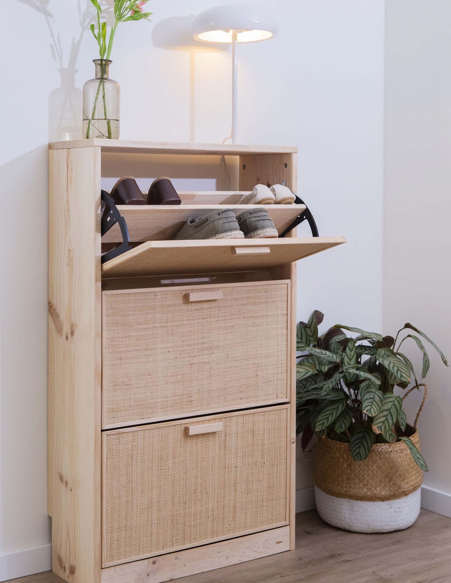 • Zapatero de rafia ideal para entradas, pasillos o rincones de uso diario