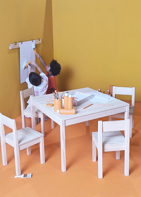 • Haurrentzako zurezko mahaiak eta aulkiak
