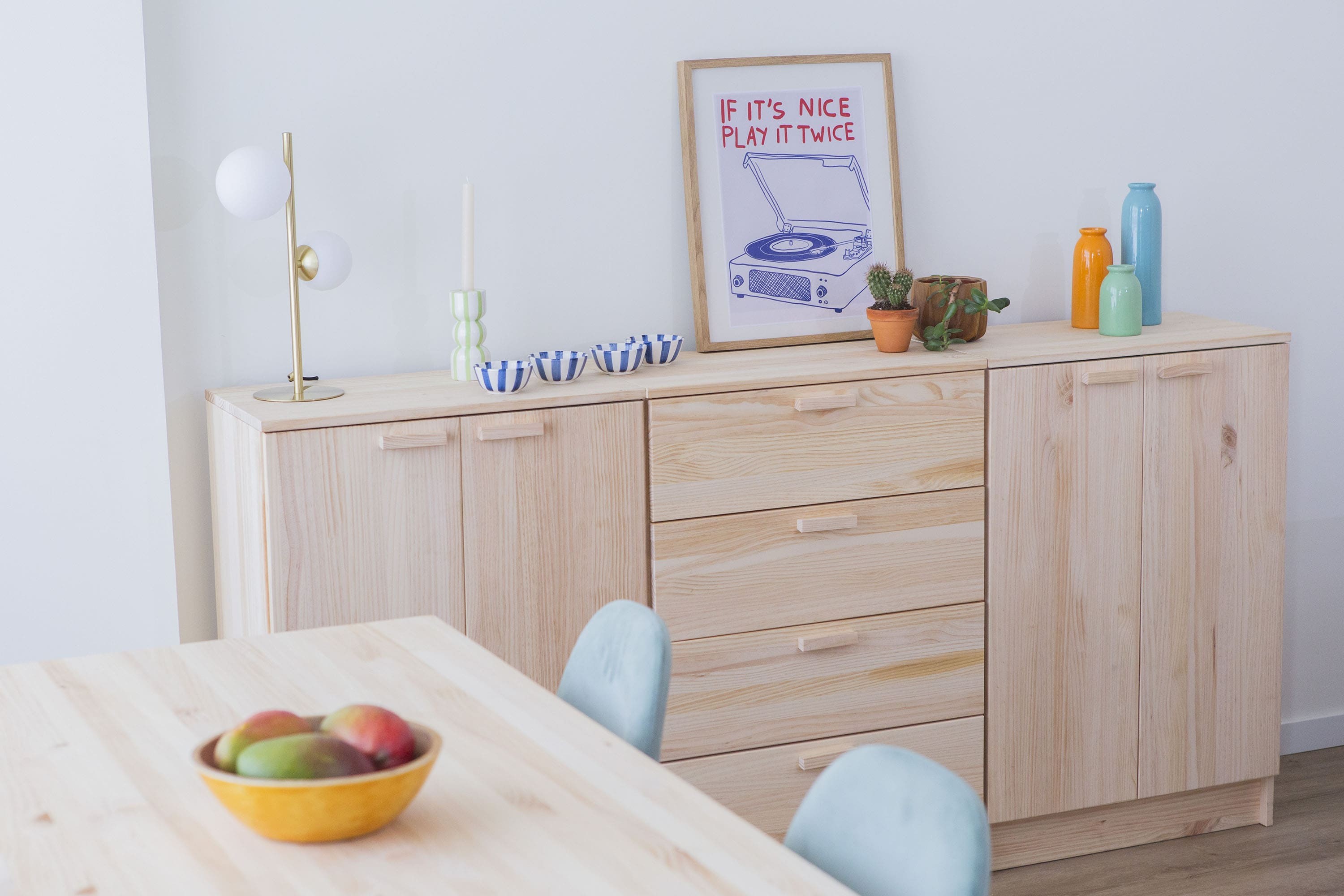 VITA pinu egurrezko ontzitegia ez da altzari bat bakarrik: espazioak orekaz bizitzeko modu bat da, egunerokotasuna baloratuz eta naturaltasunaren esentziaz inguratuz. Eta gainera, zure erara pertsonalizatu dezakezu: bernizekin edo gehien gustatzen zaizun kolorearekin, zutaz hitz egiten duen altzari bat sortuz.