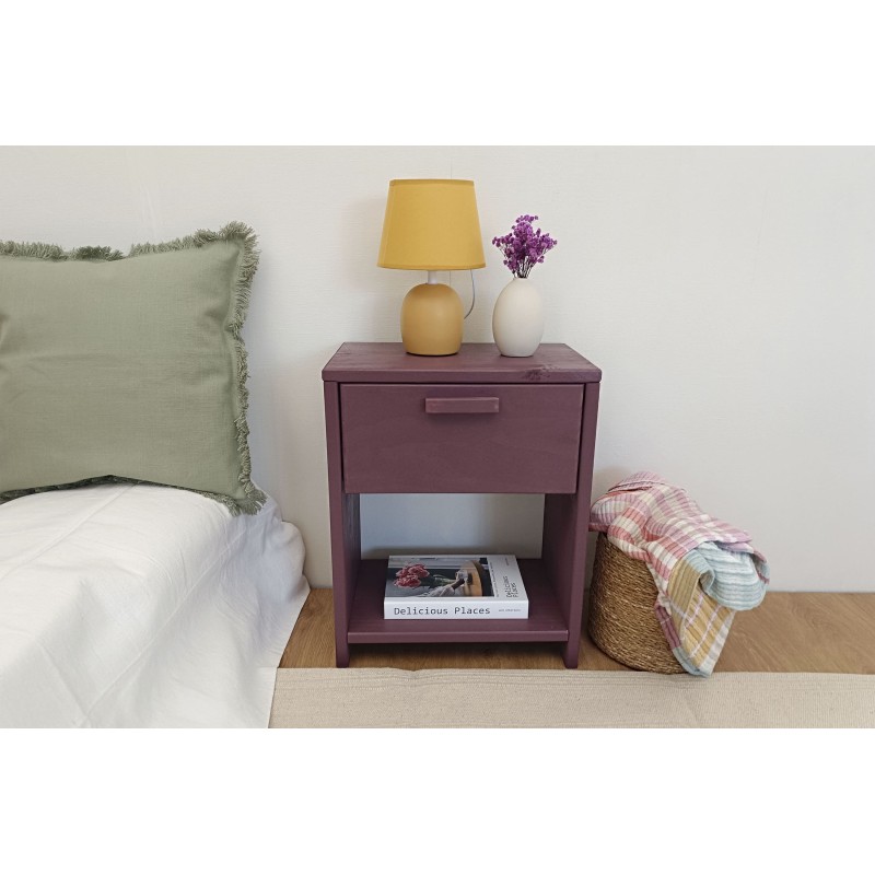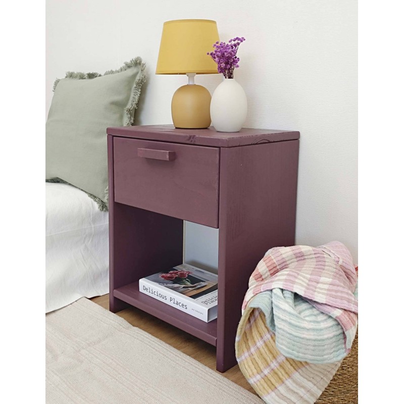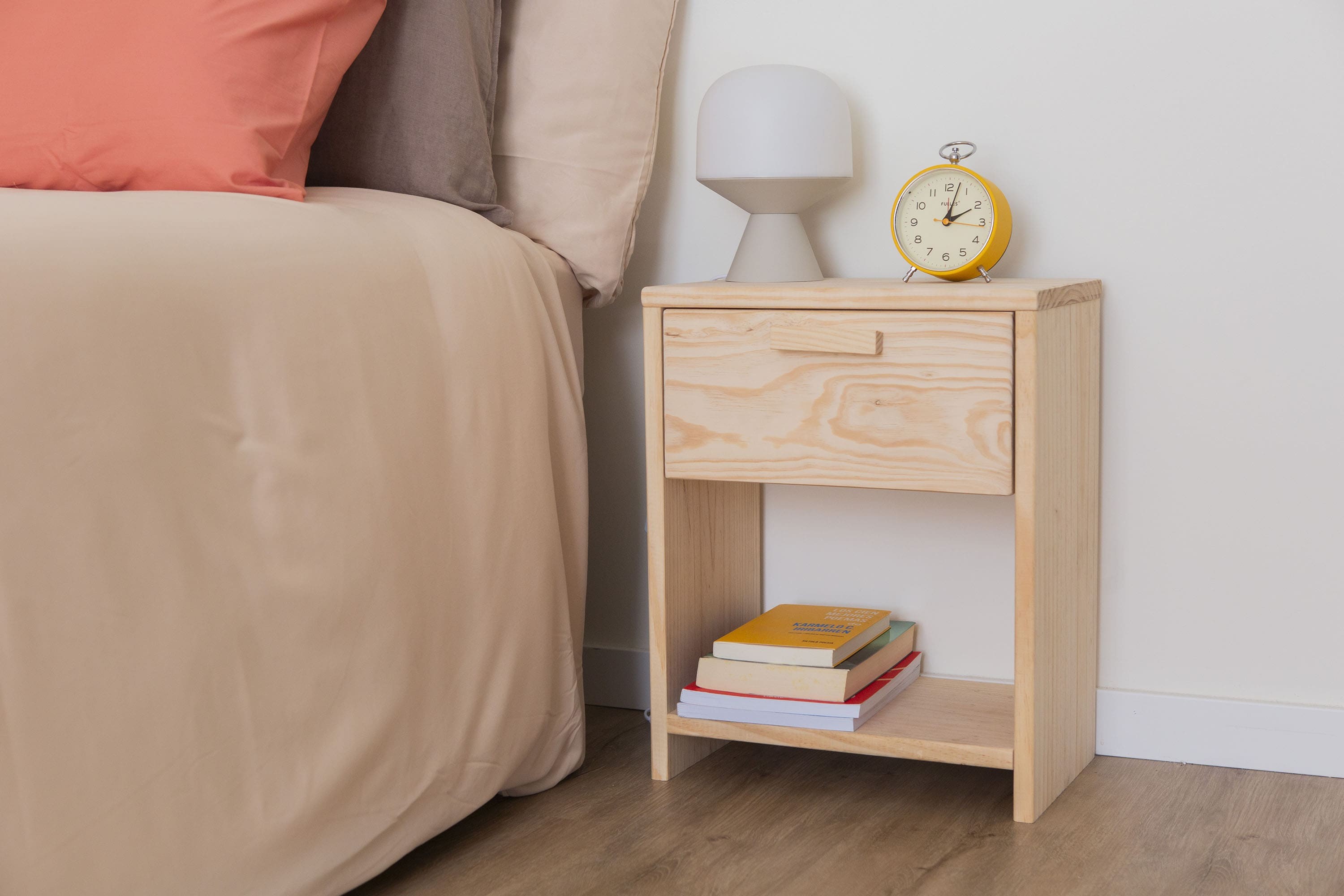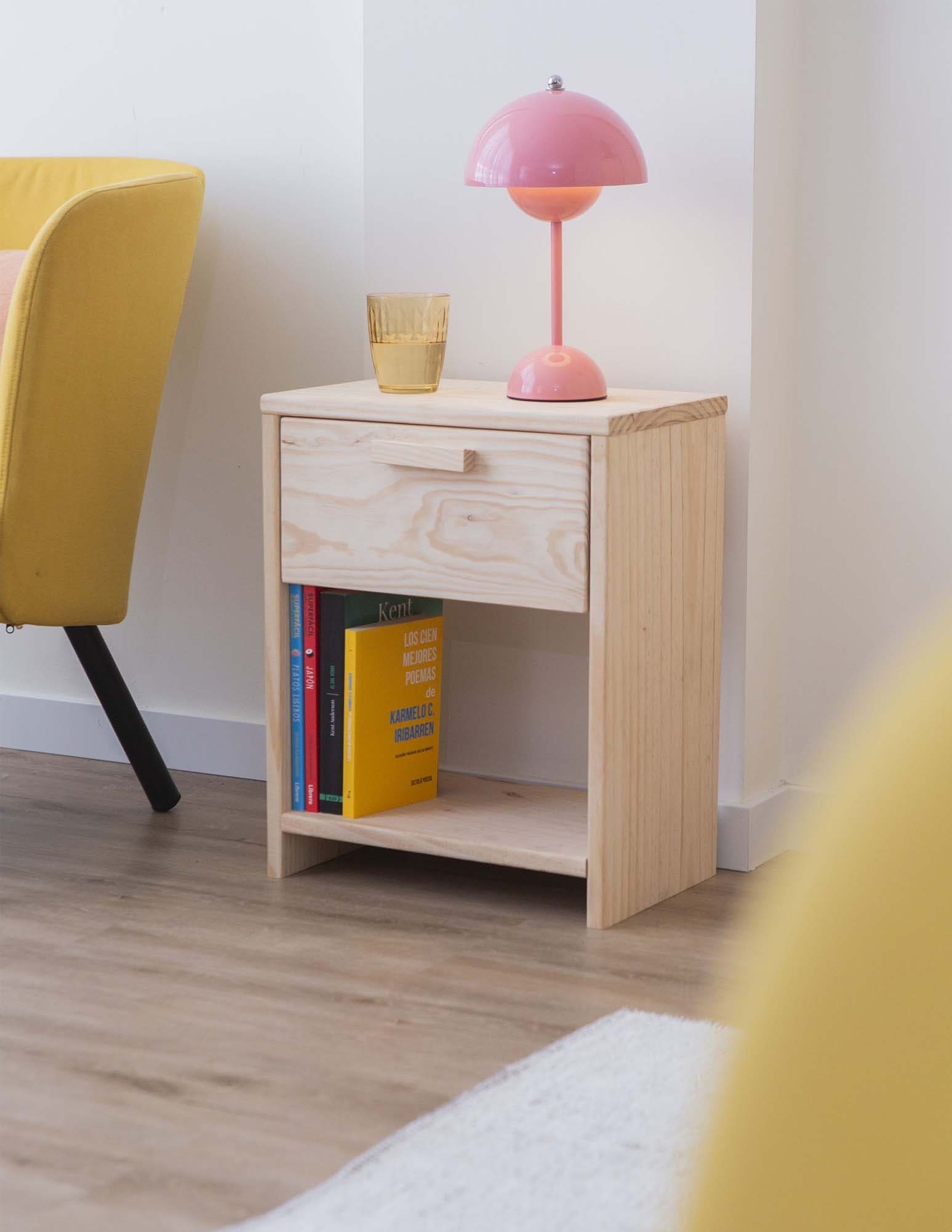 • Tiradera bateko VITA pinuzko gau-mahaitxoa bean apal batekin