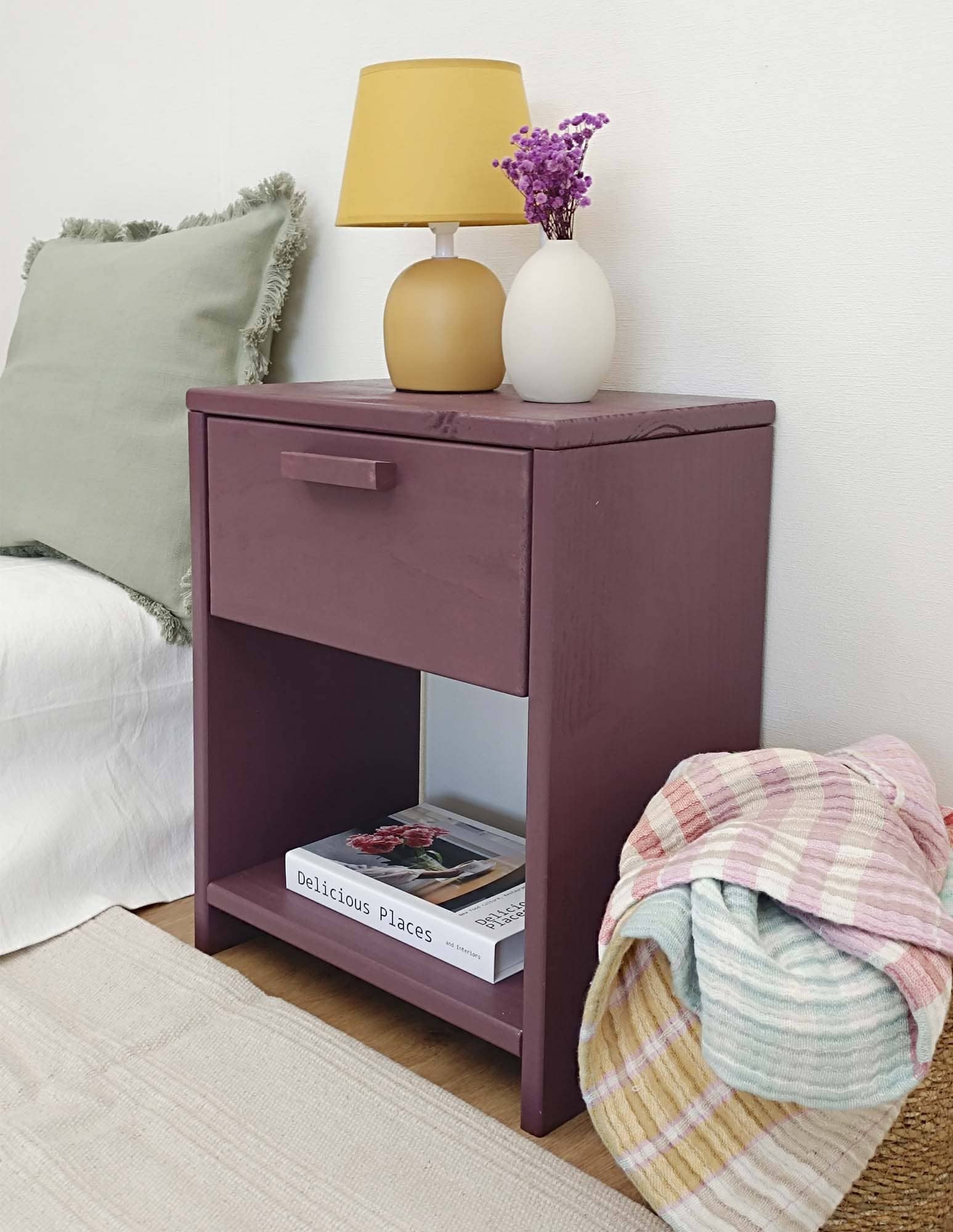 Bere neurri trinkoei esker, pinuzku gau-mahaitxo hau era guztietako espazioetan sartzen da, baita logela txikietan ere. Erabili ohearen ondoan funtsezkoa gordetzeko, egongelan mahai osagarri gisa edo jangela minimalista batean, goxotasuna eta funtzionaltasuna gehitzeko. Jartzen duzun lekuan, ordena eta itxura abegitsua emango du.