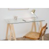 ANCORA kristalezko idazmahaia, kristalezko gainarekin (120x60 cm) eta zurezko eta ehunezko hankekin
